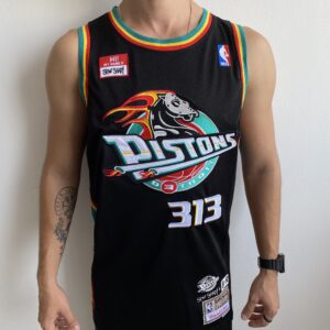 Camiseta Regata NBA Mitchell & Ness – Detroit Pistons – Slim Shady 313 – Edição Especial – NBA Remix – Colab Parceria Eminem – Preta