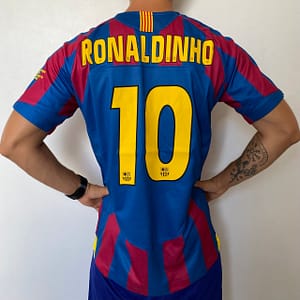 Camisa Retrô Barcelona Home 2005/2006 – Ronaldinho 10 – Nike – Azul Grená