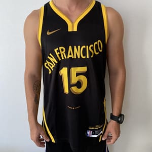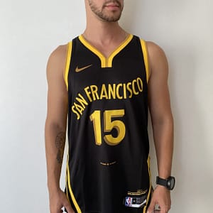 Camiseta Regata Basquete NBA Swingman Golden State Warriors Gui Santos 15 City Edition Preta Amarela 2024 Nike
