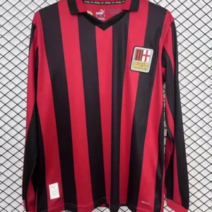 Camisa Milan Home Comemorativa 125 Anos Manga Longa Retrô 2025 Puma Vermelha e Preta