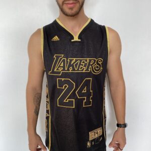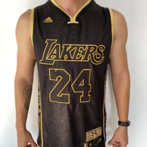 Camiseta Regata Basquete NBA Los Angeles Lakers Preta Mamba Negra – Black Mamba – 24 Kobe Bryant – 5x – Edição Comemorativa – Preta Dourada – Fios de Ouro – Adidas