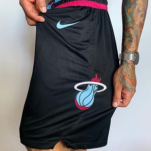 Short Bermuda Basquete NBA Miami Heat Preta Rosa e Azul City Edition Nike