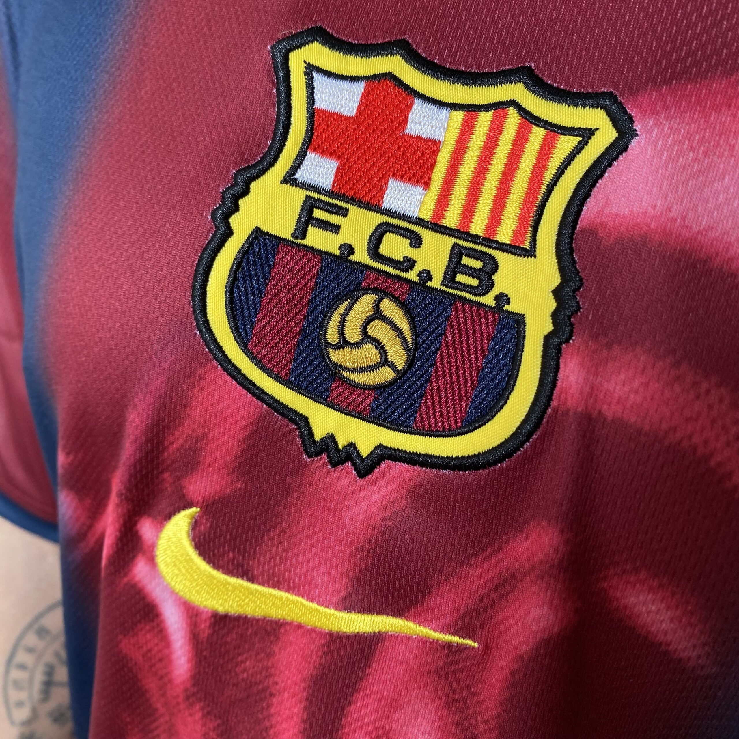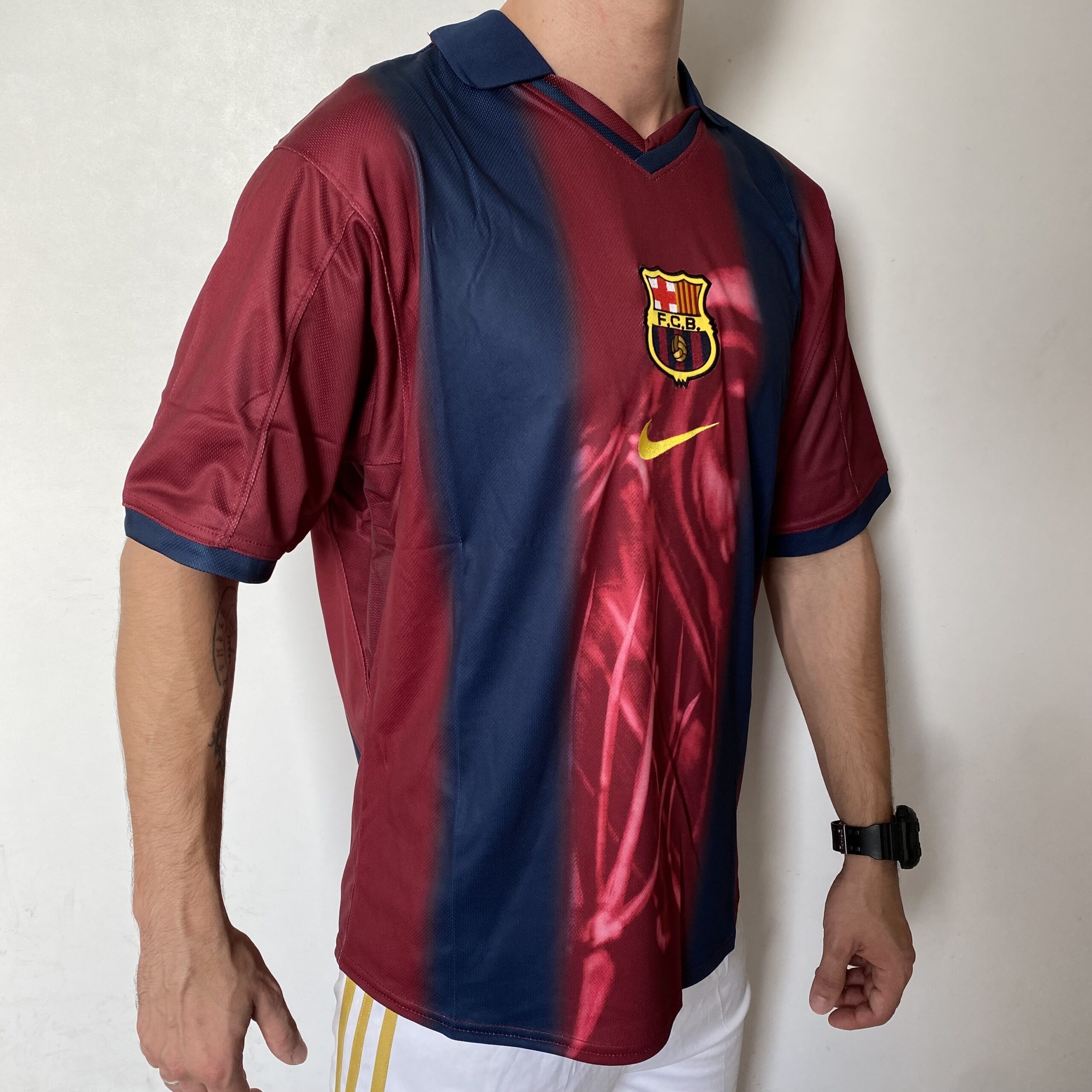 Elementos históricos do Barça estão preservados, com escudo clássico em destaque e acabamento pensado para fãs exigentes: