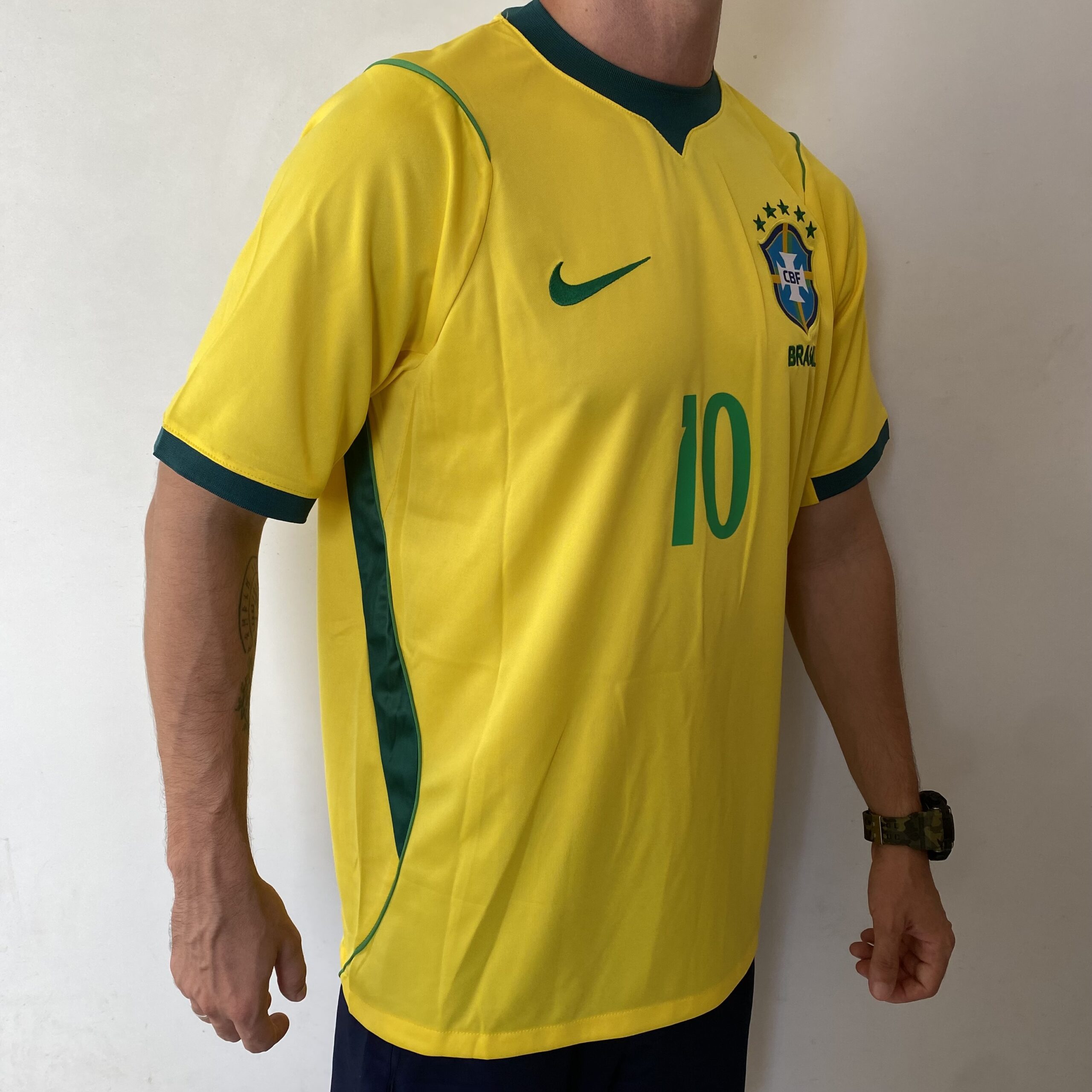 A camisa titular do Brasil trará o novo template da marca americana como base e não terá muitas “invenções”. Nas imagens podemos ver que o amarelo volta a ter um tom mais escuro, após dois modelos mais claros, e tem gola redonda com uma ponta triangular na frente, em verde, num tom mais escuro (Geody Teal), assim como era em 1970, padrão que também será visto nos punhos. Os demais detalhes do modelo, como arcos nas dorsais e finas linhas nos ombros e laterais do corpo, além dos punhos, são verdes (Light Menta). O escudo é aplicado no lado esquerdo no peito, com o Swoosh em verde no lado direito. Dentro da gola, um selo especial traz um losango com a palavra “Vai Brasa”.