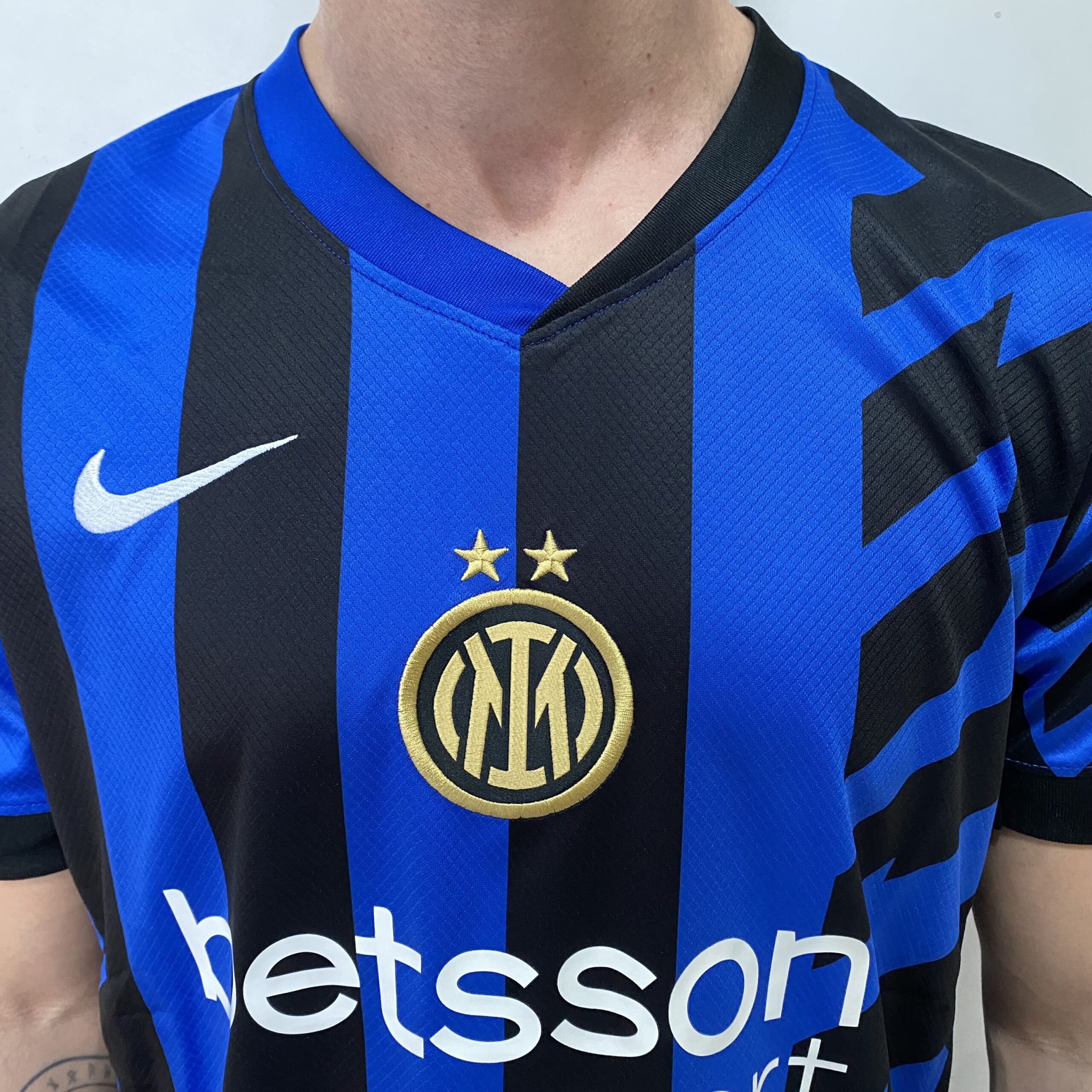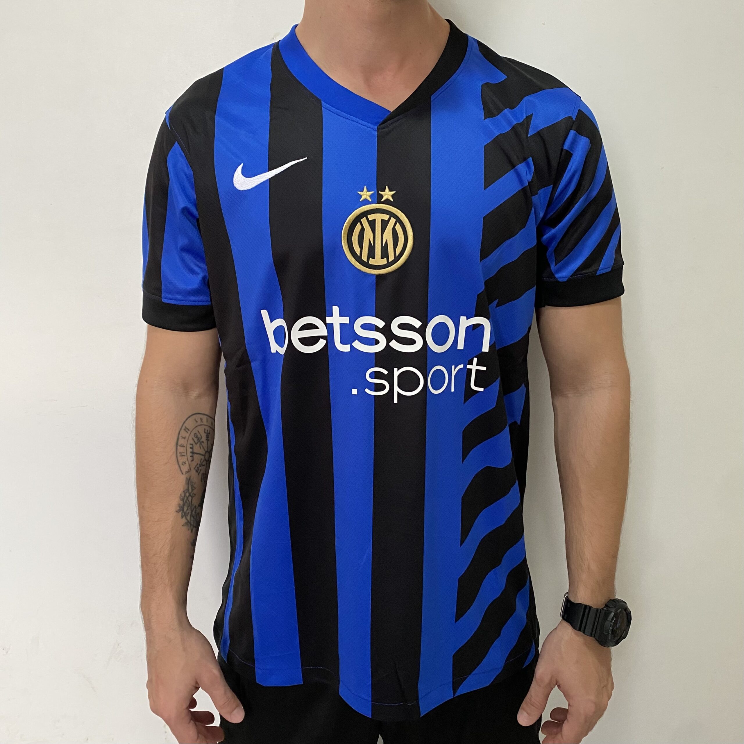 A nova camisa titular da Inter de Milão traz uma ode à cidade de Milão, reconhecida mundialmente pela suas ideias modernas e vanguardistas, da arquitetura ao design, da arte à moda. Baseado neste mote da inovação, o kit ganha junto de suas tradicionais listras verticais, uma interpretação moderna e dinâmica, com faixas diagonais na região esquerda do peito. O escudo é aplicado centralizado em dourado e se destaca pela presença da segunda estrela no topo. O logo da Nike aparece em branco, no lado direito do peito, enquanto o scudetto, que representa o título italiano, no lado direito. O novo patrocinador máster, a Betsson Sport, aparece em branco na barriga. A gola é V no estilo assimétrico da Nike, com o lado direito azul e o esquerdo preto, enquanto as mangas seguem o padrão do corpo de cada um dos lados, e se complementam com punhos pretos. Dentro da gola, a serpente é vista junto da bandeira de São Jorge, presente no brasão da cidade de Milão.