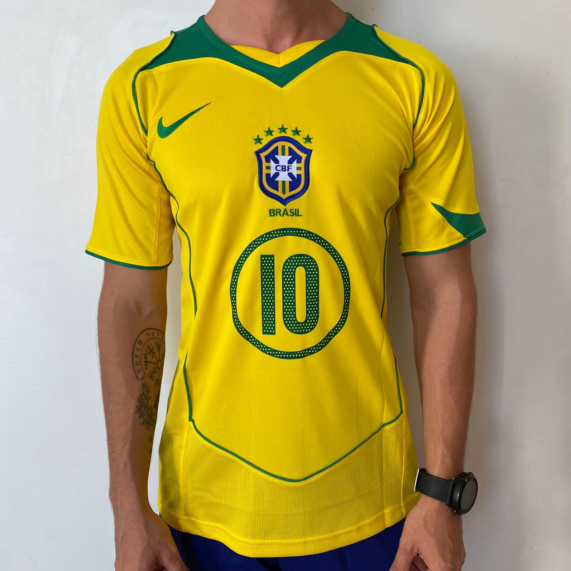Camisa Retrô Clássica Seleção Brasileira Brasil – Nike – Ronaldinho 10 – Amarela – 2004 – Total 90