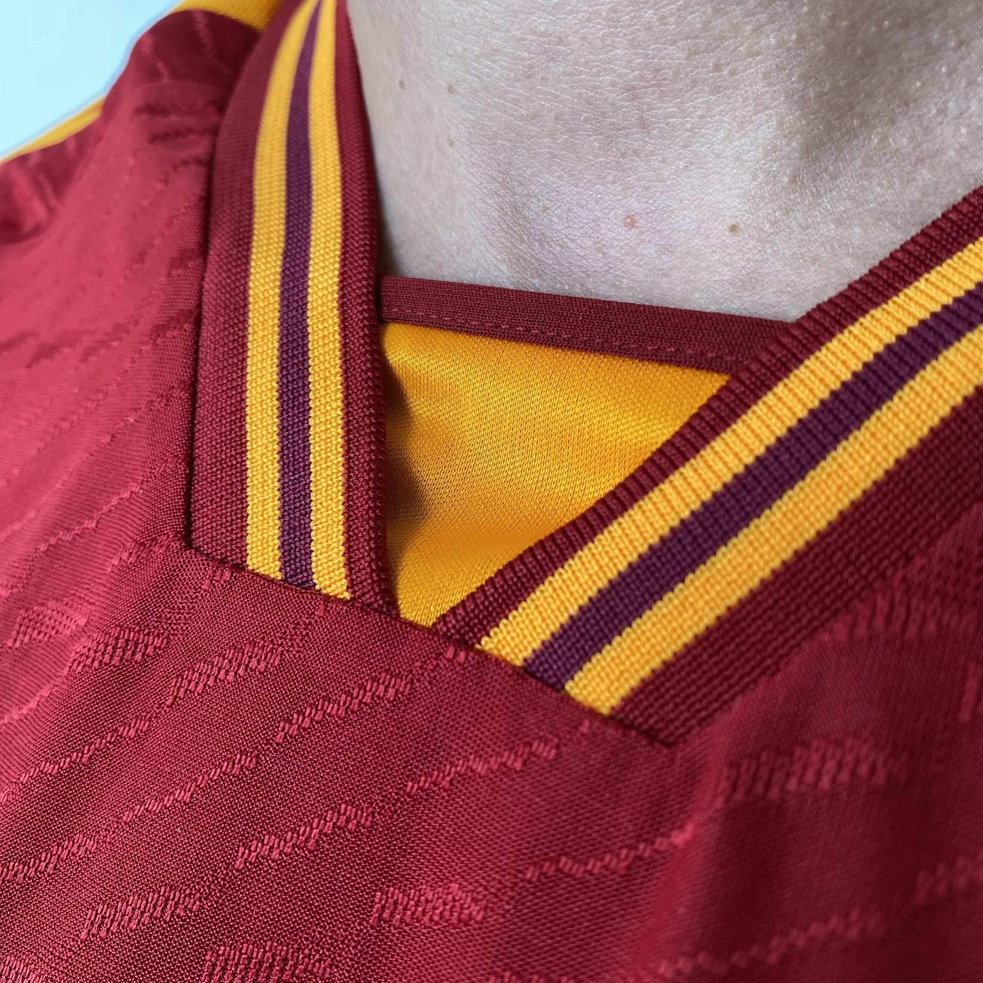 As três listras retornam ao manto giallorossi após 30 anos e o uniforme para esta temporada é uma reedição de kit usado na despedida em 92/93. A camisa titular da Roma tem o vermelho como cor predominante com o amarelo como cor complementar, sendo visto em detalhe frontal da gola, em frisos duplos no colarinho e nas três listras que percorrem os ombros. O amarelo também é visto em painéis nas laterais e em linhas que percorrem tanto as laterais como a barra de trás do manto.