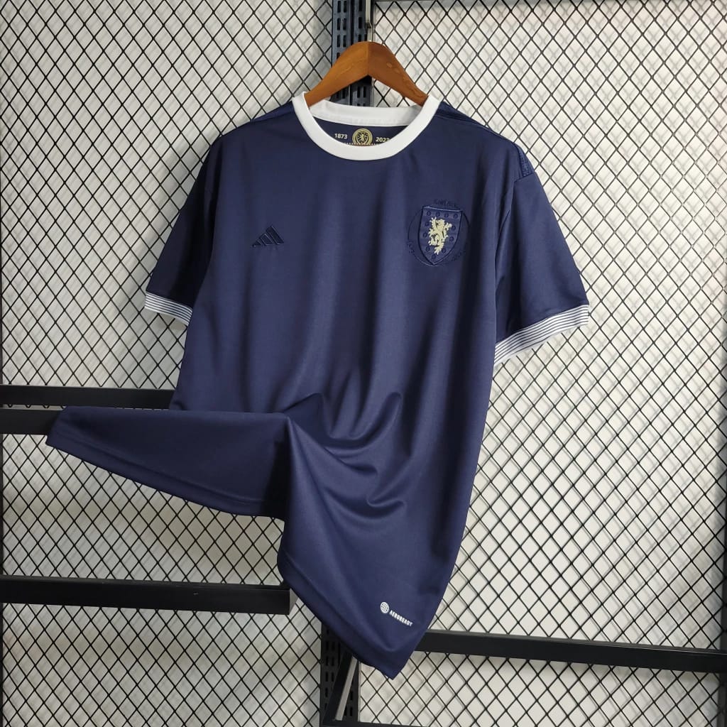 Comemorando os 150 anos da Federação Escocesa de Futebol, esta camisa foi lançada com um ar de nobreza.