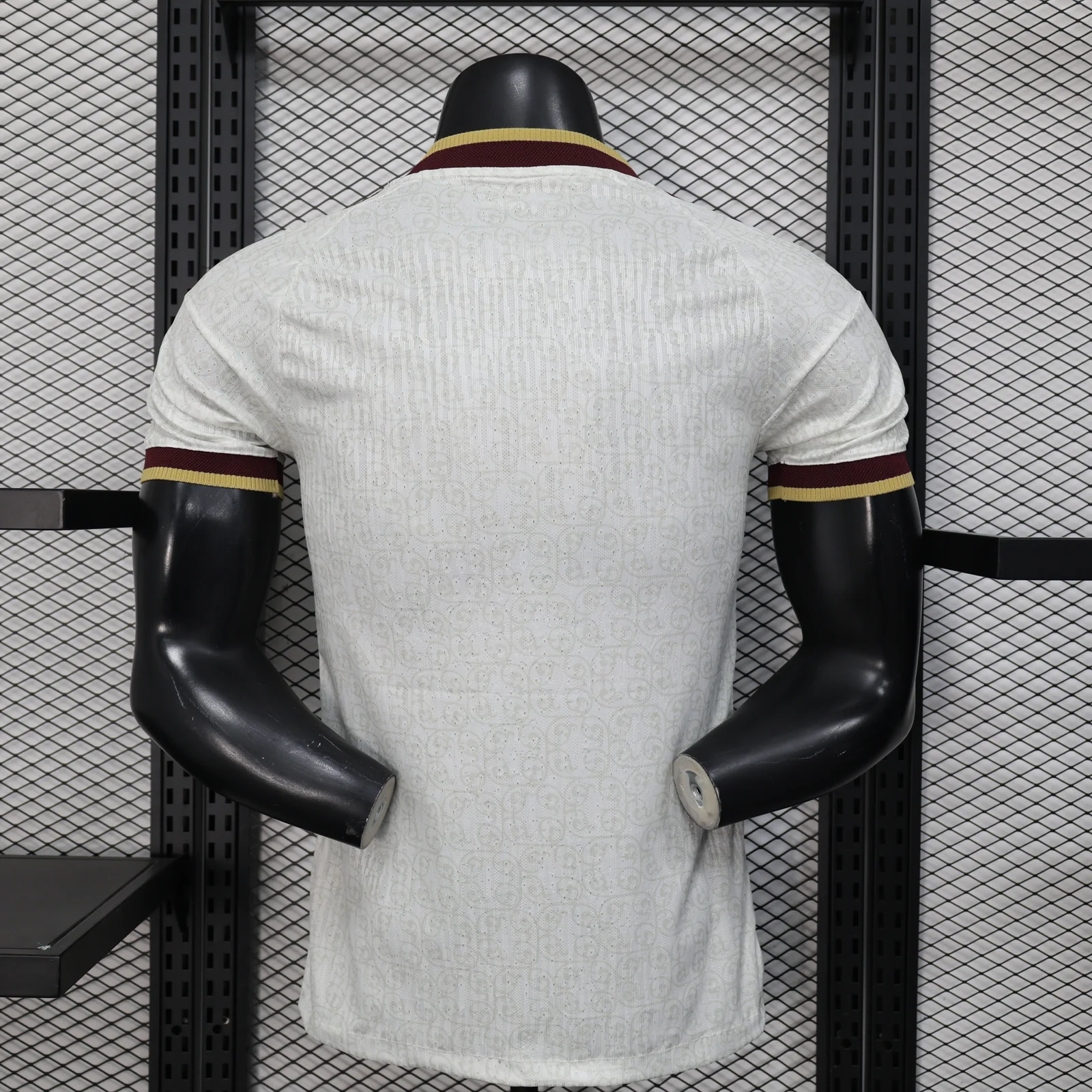 Camisa versão jogador tem a forma muito justa, pois o recorte é slim (bem coladinha), sempre indicamos um ou dois tamanhos a mais que o usado no dia a dia. Mas se desejar nessa proposta de mais justinha, o mesmo tamanho ou até um a mais, servirá tranquilamente.
