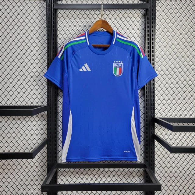 A camisa titular da Itália traz o azul royal como cor predominante, com os dois arcos do modelo nas laterais em branco. No corpo, são colocadas finas linhas verticais em embossing. Enquanto isso, nas laterais do corpo, é utilizada uma tonalidade mais escura do azul royal. As três listras nas mangas trazem as cores da bandeira nacional, enquanto a faixa centralizada na gola é branca. Na nuca é escrita a frase “L’Itália Chiamò”, retirada do hino nacional.