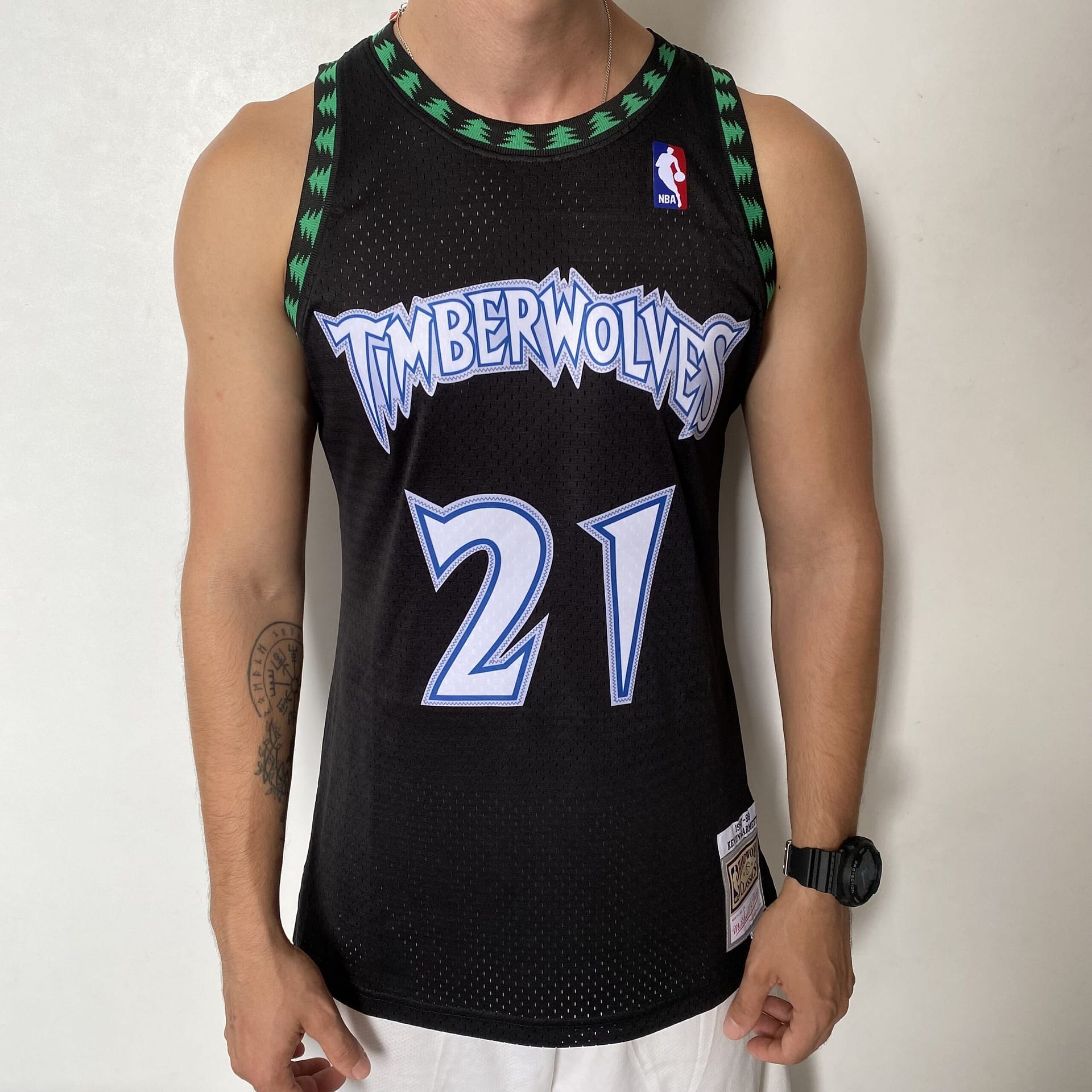 Camiseta Regata Basquete NBA Minnesota Timberwolves 21 Kevin Garnett 21 Mitchell & Ness Preta 1997/98