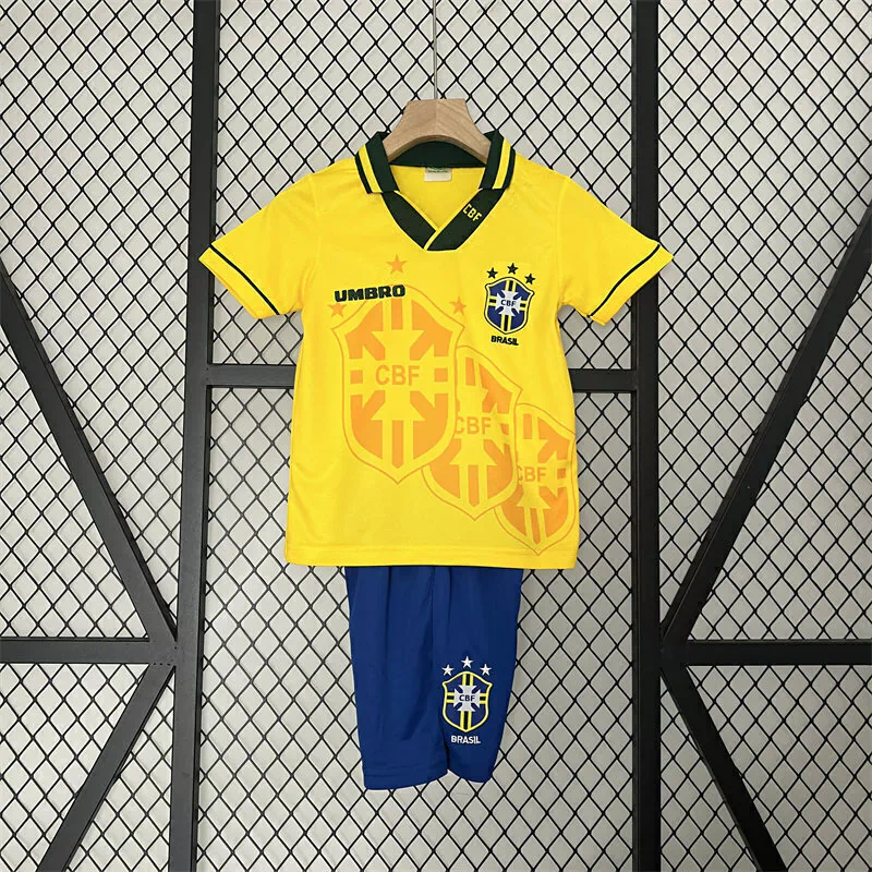 Kit Conjunto Infantil Crianças Camisa e Calção Brasil Retrô Home Infantil 1994 Umbro